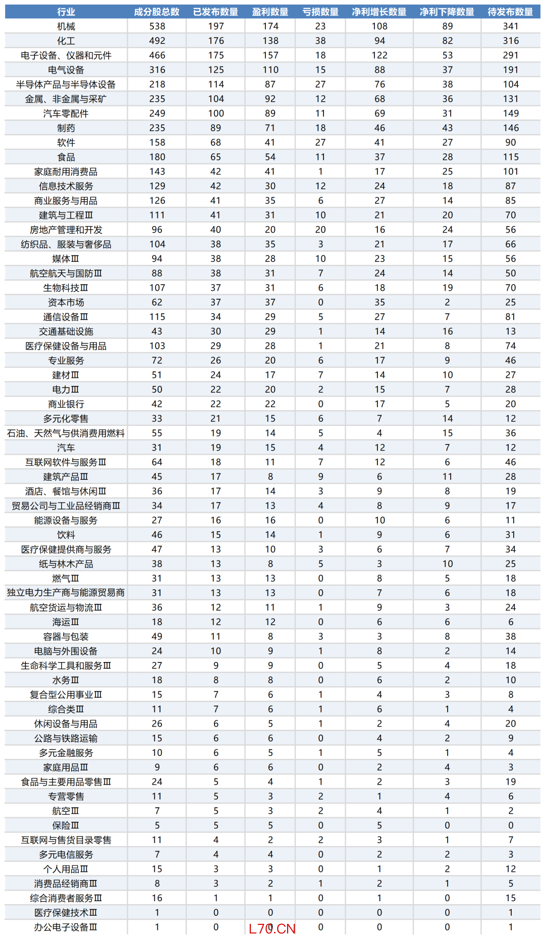 截至当日各行业年报发布情况一览:
