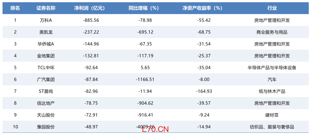 截至当日所有年报净亏损TOP10: