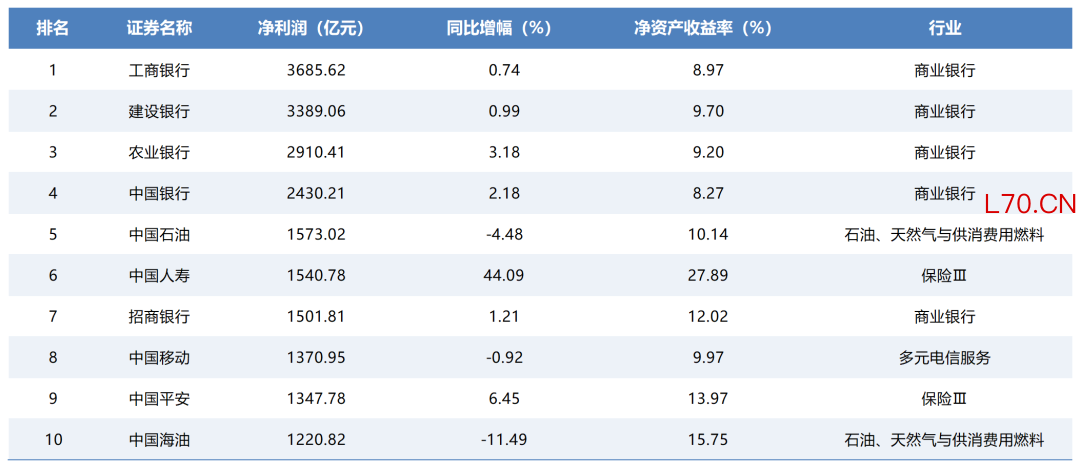 截至当日所有年报净利润TOP10: