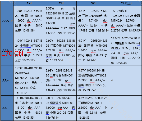 【1.68】26华银电力MTN001 2Y 5e AAA/-- 【1.5-1.7】