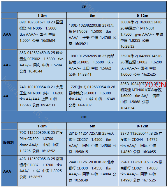 今日中票交投活跃,短端成交在估值附近,略有减点,需求集中在1-3年AAA品种。