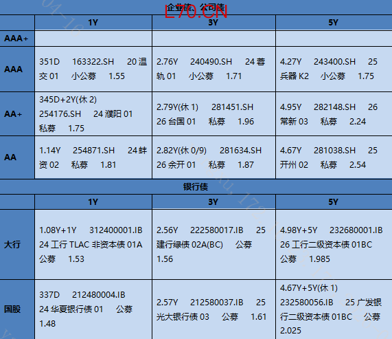 银行间短债今日情绪较好。AAA 26Q1在1.43-1.48,26Q2在1.47-1.49,26Q3在1.47-1.51,26Q4在1.51-1.56。