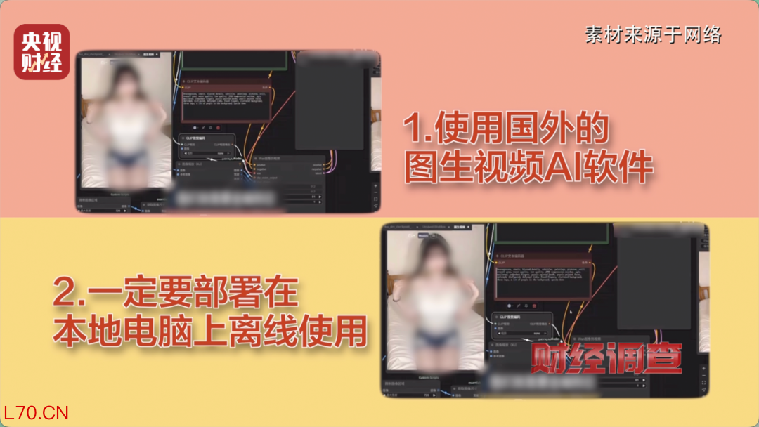 这些教程为了兜售自己的产品,还刻意引导用户如何规避监管。比如使用境外图生视频AI软件、将程序部署在本地电脑离线运行等。